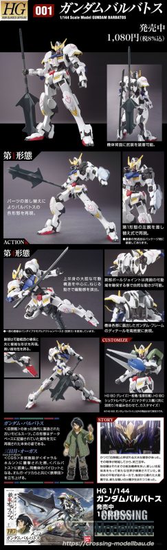 From “Mobile Suit Gundam: Iron-Blooded Orphans”, the protagonist’s mobile suit, Gundam Barbatos, has been made into a Gunpla model with specifications full of play value! It is compatible with the two forms that appear in the show, and the set colors are faithfully reproduced through part division and sticker expression! Some exterior parts and weapons can be replaced with parts from other kits, allowing for a variety of customizations! Weapons that appear in the show, such as a mace and a long sword, are also included!