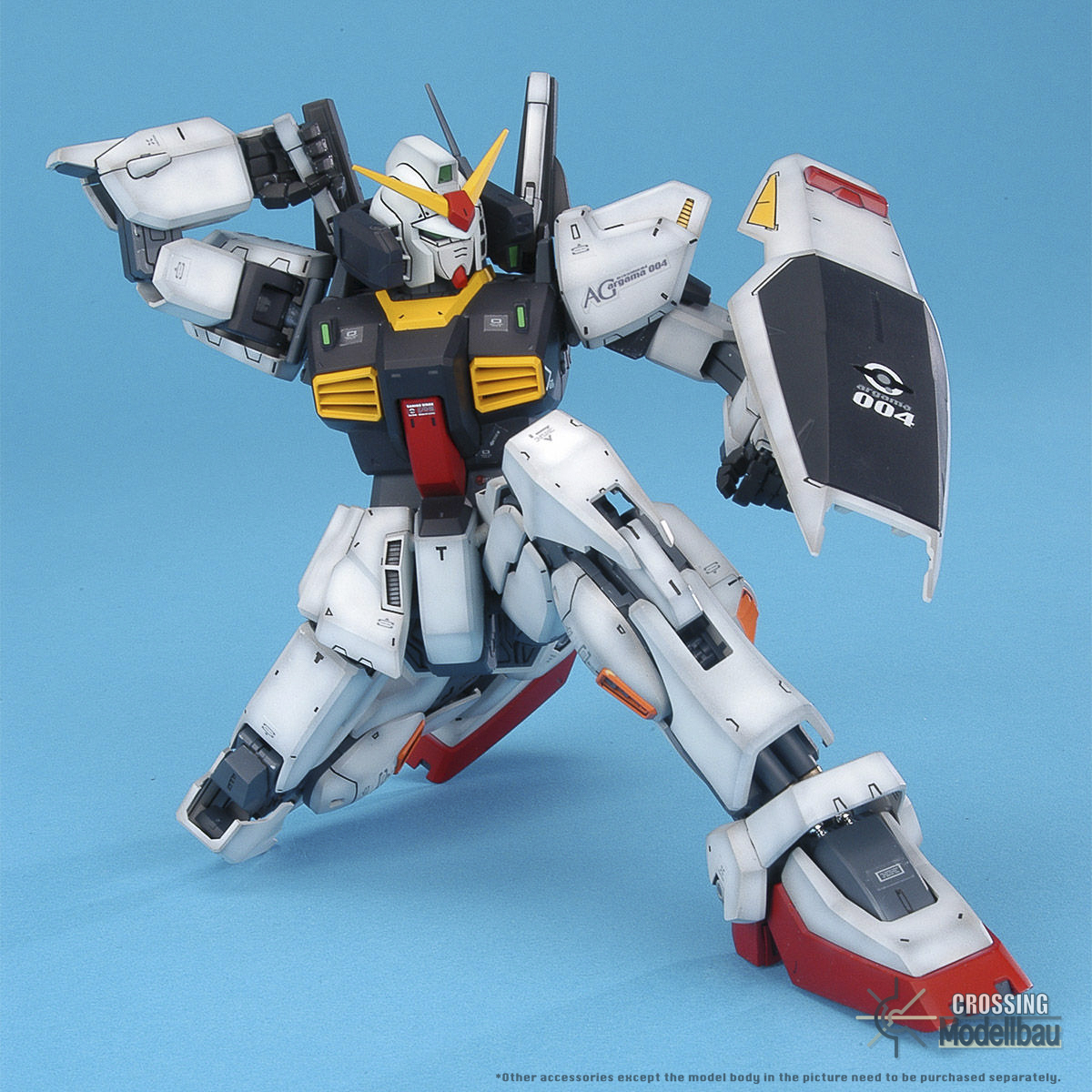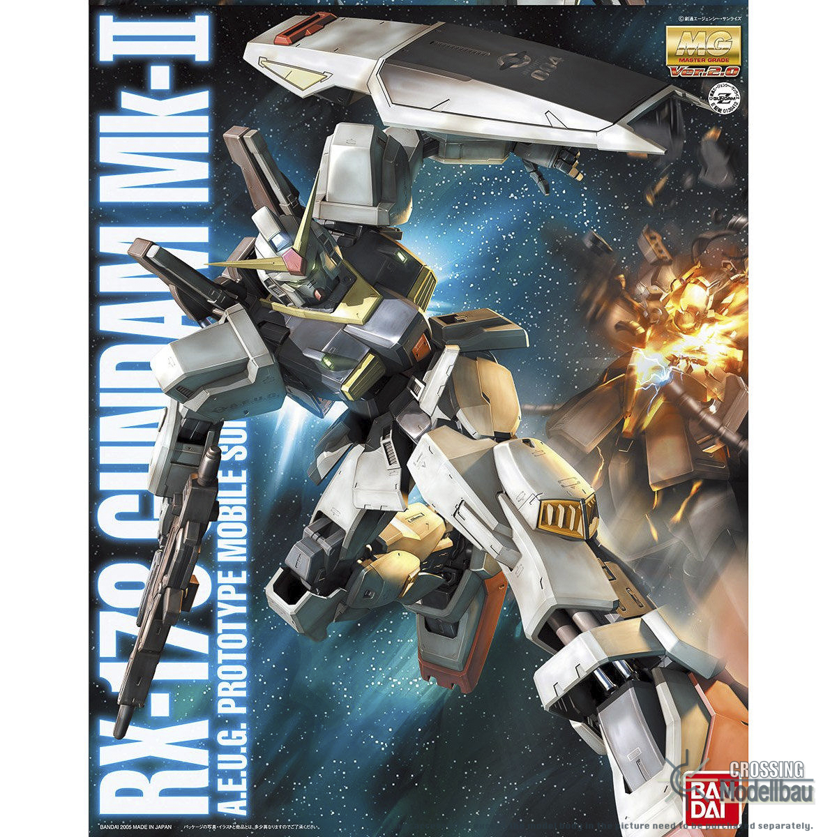 All information related to the product and pictures are provided by the producer.CROSSINGMODELLBAU is not responsible for errors and technical changes.The MG (master grade) plastic model of the Gundam Mk-II, which was very active in the movie version “Mobile Suit Z Gundam Hoshi o Inheritor”, has been upgraded to “Ver.2.0”. The latest armor-linked movable action system is adopted for each part, such as the ankle and snare armor. The hip joint axis position adjustment mechanism allows you to reproduce intense action poses such as in the play. Various weapons such as vulcan pod, bazooka, rifle and shield are included. The telescopic mechanism of the shield can be reproduced, and the magazines for the rifle and bazooka are detachable. A display stand that reproduces the MS Catapult is included.