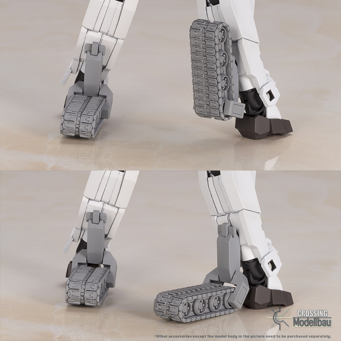 ・The 3mm connectors on the arms and feet are compatible with gear from the MSG and Frame Arms series.