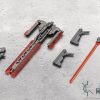 Grave Arms2 is a combination weapon resembling a cross. While the primary weapon is a giant cannon, it also acts as a large sheath for a laser blade and dual handguns. In addition to transforming into a large sword, the grip can be removed attached to the included effect parts to create a deadly laser blade sure to liven up any heroic action scene. The weapon can also be mounted to various places using the articulated mounting arm.