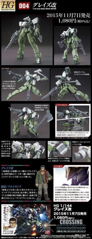 All information related to the product and pictures are provided by the producer.CROSSINGMODELLBAU is not responsible for errors and technical changes.■From “Mobile Suit Gundam: Iron-Blooded Orphans”, the Graze Kai, a modified version of the Graze’s head and torso, has been made into a kit!