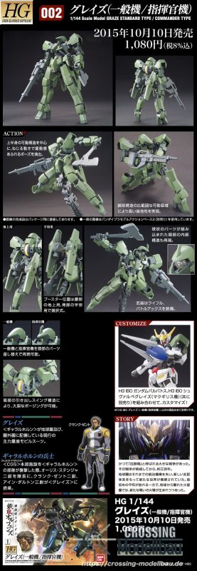 All information related to the product and pictures are provided by the producer.CROSSINGMODELLBAU is not responsible for errors and technical changes.From “Mobile Suit Gundam: Iron-Blooded Orphans”, a mass-produced Gjallarhorn MS is here! By replacing parts, you can recreate two forms: a commander’s unit with horns and a general unit without horns! The head is equipped with a deployment gimmick, and the internal structure with spherical parts is also recreated! It also comes with various equipment such as a rifle and a battle axe that can be mounted on the waist!