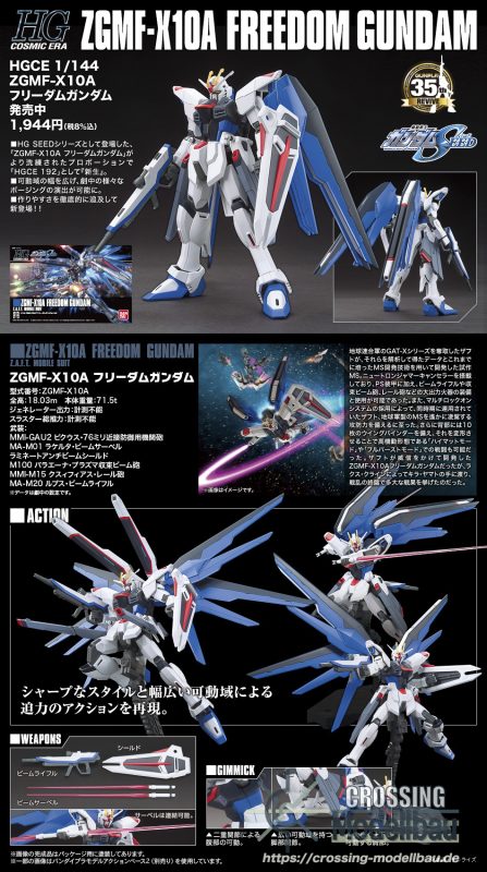 All information related to the product and pictures are provided by the producer.CROSSINGMODELLBAU is not responsible for errors and technical changes.■The “ZGMF-X10A Freedom Gundam” that appeared in the HG SEED series has been reborn.